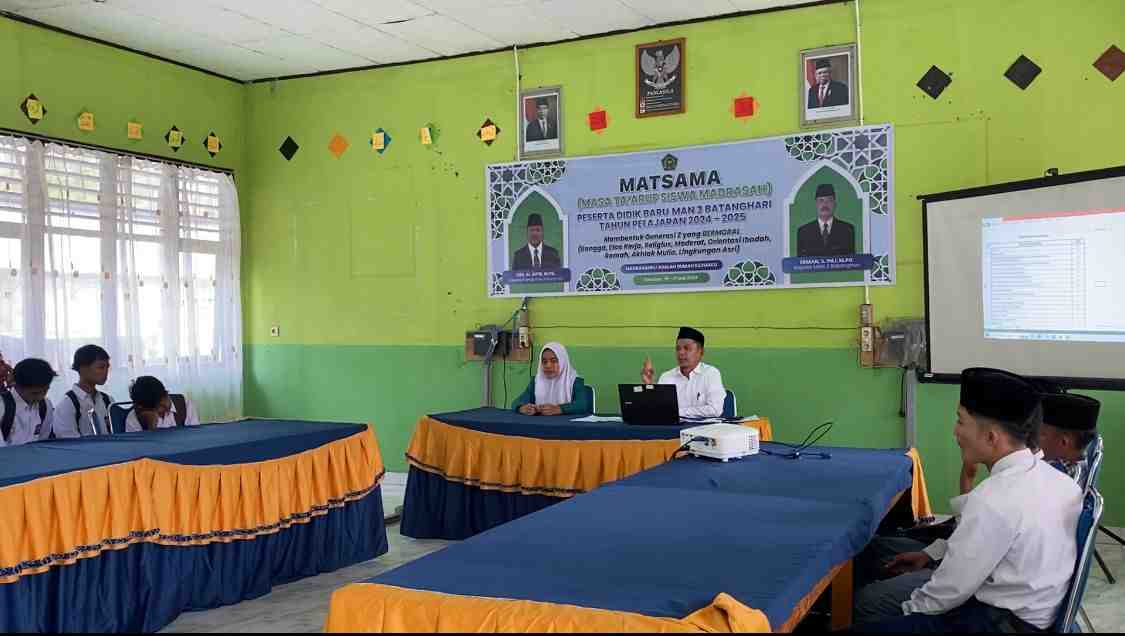 Dalam kesempatan ini kepala madrasah memperkenalkan segala sesuatu yang berkaitan dengan lingkungan madrasah mulai dari sejarah, visi-misi, program unggulan, proses pembelajaran, kurikulum dan pengenalan pendidik dan tenaga kependidikan MAN 3 Batang Hari beserta tugas dan fungsinya.