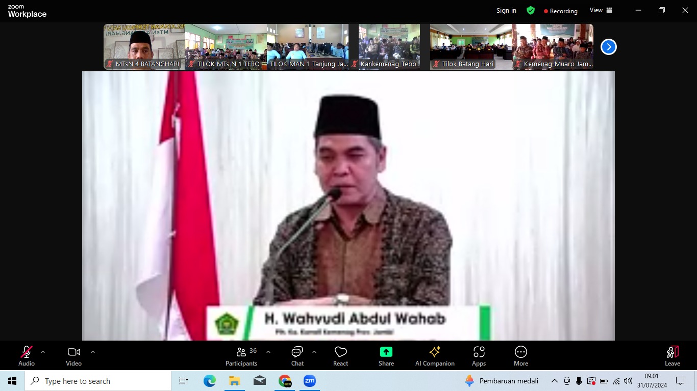 Pasar Terusan (MAN 3) – MAN 3 Batang Hari menghadiri pembukaan Kompetisi Sains Madrasah (KSM) Tingkat Provinsi Jambi Tahun 2024 bertempat di Ruang Laboratorium Komputer Rabu (31/07/2024). pembukaan KSM tahun ini digelar secara daring melalui aplikasi virtual zoom meeting.