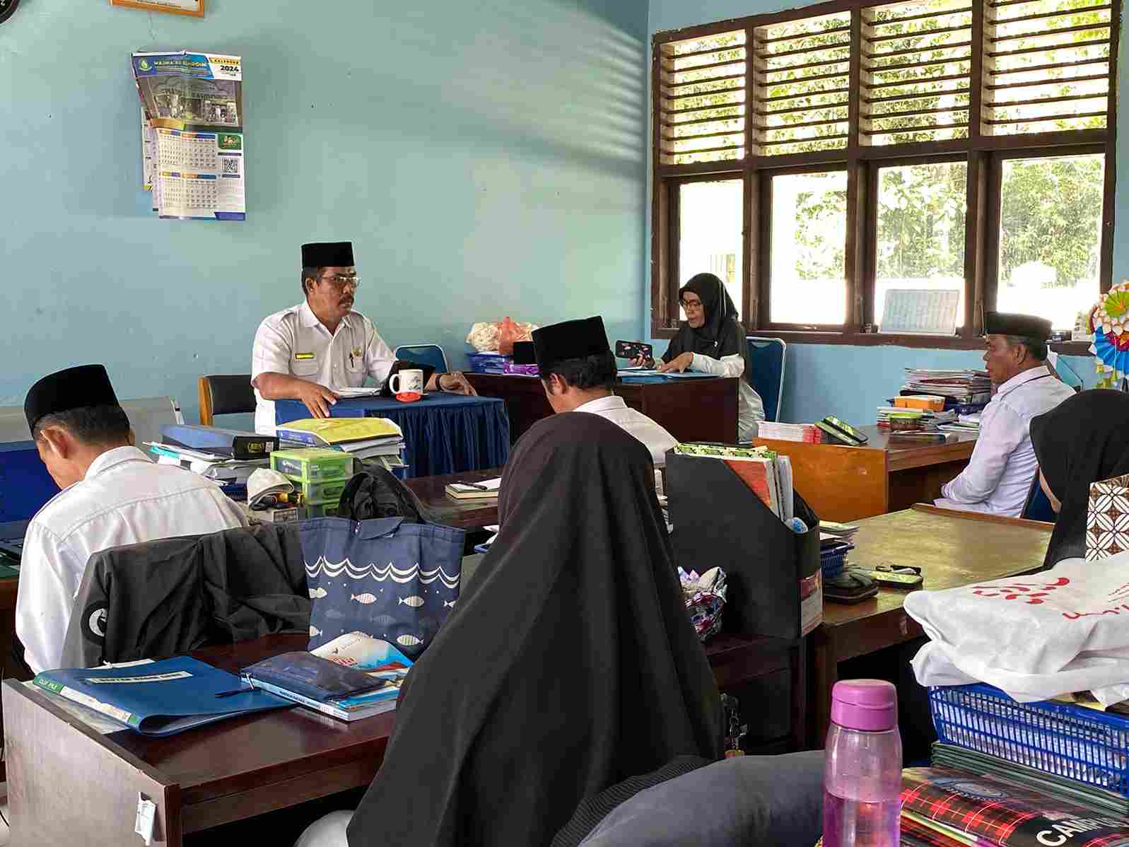Kepala Madrasah Erman, S.Pd.I., M.Pd dalam arahannya mengatakan “Untuk meningkatkan mutu kerja pada tahun ajaran 2024/2025, kita harus fokus pada tupoksi kerja masing-masing sesuai SOP yang berlaku guna memaksimalkan dan memberikan pelayanan terbaik. untuk itu kita harus fokus pada uraian tugas yang dibebankan kepada masing-masing pendidik dan tenaga kependidikan." Ujarnya.