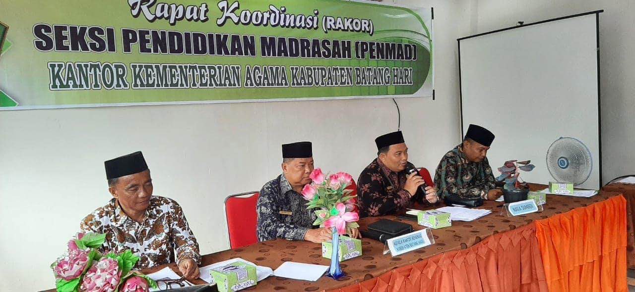 Rapat dibuka langsung oleh Kepala Kantor Kementerian Agama Kabupaten Batang Hari Bapak Drs.H. Al Jufri, M.Pd.I yang juga didampingi oleh Kepala Seksi Pendidikan Madrasah Bapak Aprizal, M.Pd dalam hal ini juga bertindak sebagai narasumber.