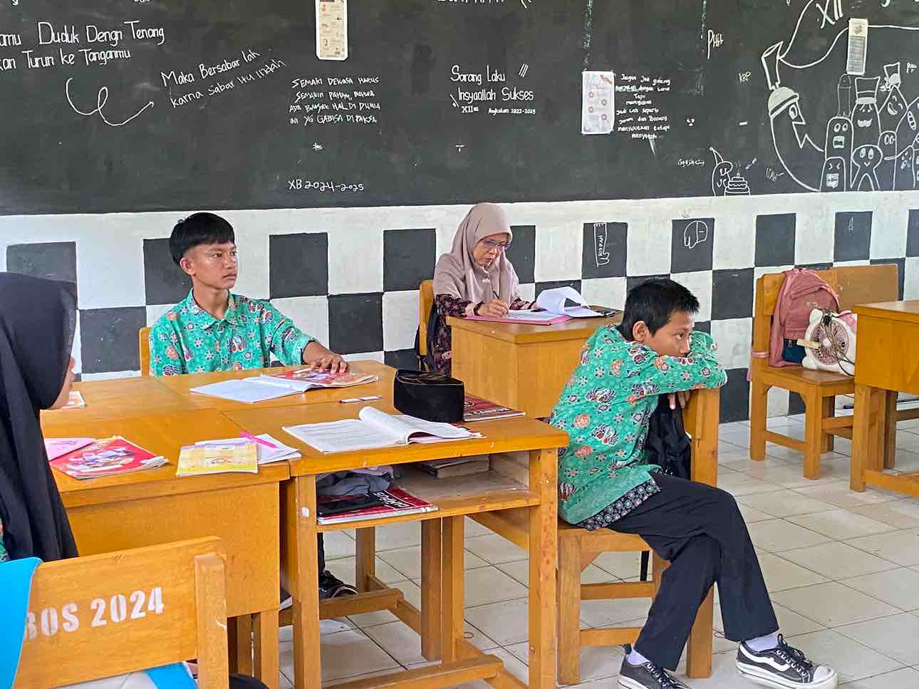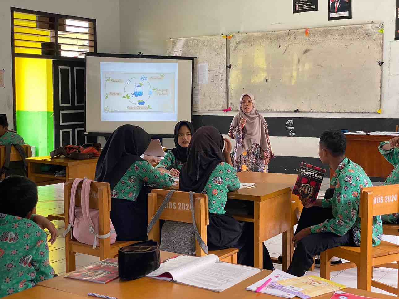 Terlihat Fitriani menjelaskan dengan gamblang materi pelajaran yang dibawakan nya hari ini, menggunakan media pembelajaran berbasis digital dan penggunaan metode pembelajaran yang beragam, peserta didik terlihat sangat antusias mengikuti materi yang diajarkan tahap demi tahap hingga tidak terasa jam pelajaran hampir habis.