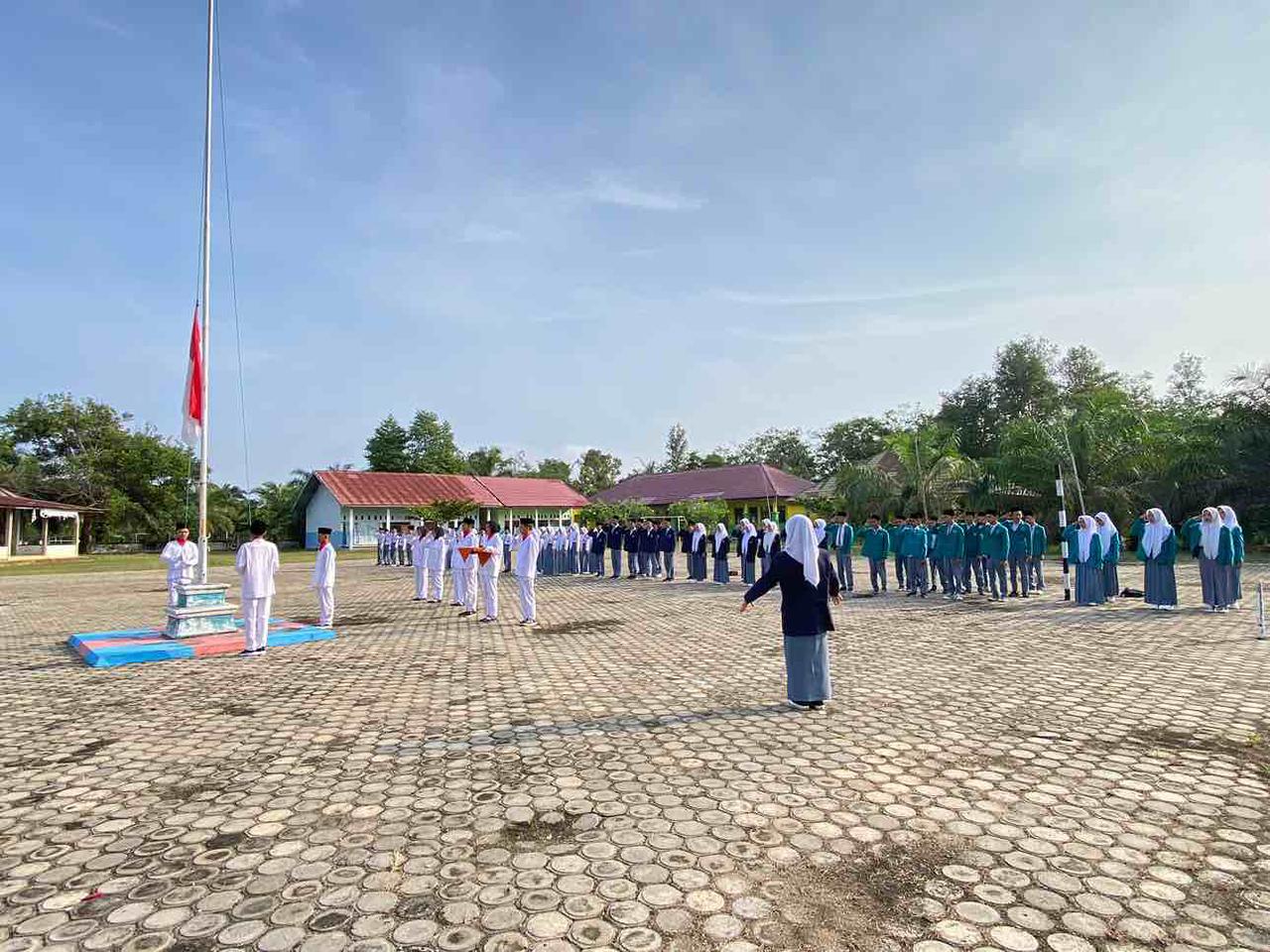 Bertindak sebagai pembina upacara kali ini yaitu Kepala Kepolian Sektor Muara Bulian AKP Dwiyatno, SH., MH yang menyempatkan hadir memberikan amanat dan motivasi yang membangun semangat belajar peserta didik.