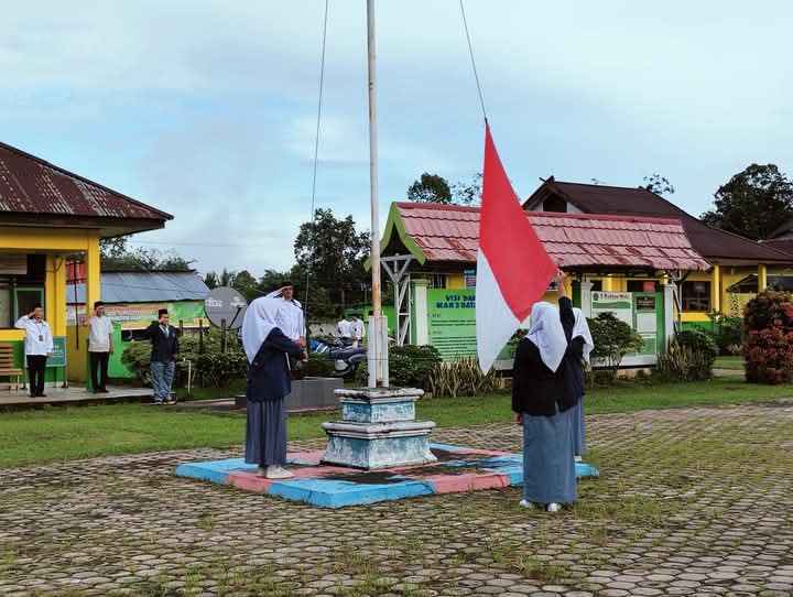 Batang Hari (MAN 3) - Upacara Pengibaran Bendera Merah Putih rutin kembali digelar di lapangan olahraga Madrasah Aliyah Negeri (MAN) 3 Batang Hari pada Senin pagi ini (14/04/2025). Kegiatan yang diikuti oleh seluruh civitas akademika MAN 3 ini berlangsung dengan khidmat dan sarat akan rasa nasionalisme yang tinggi. Bertindak selaku Pembina Upacara Kepala Madrasah Erman, S.Pd.I., M.Pd.