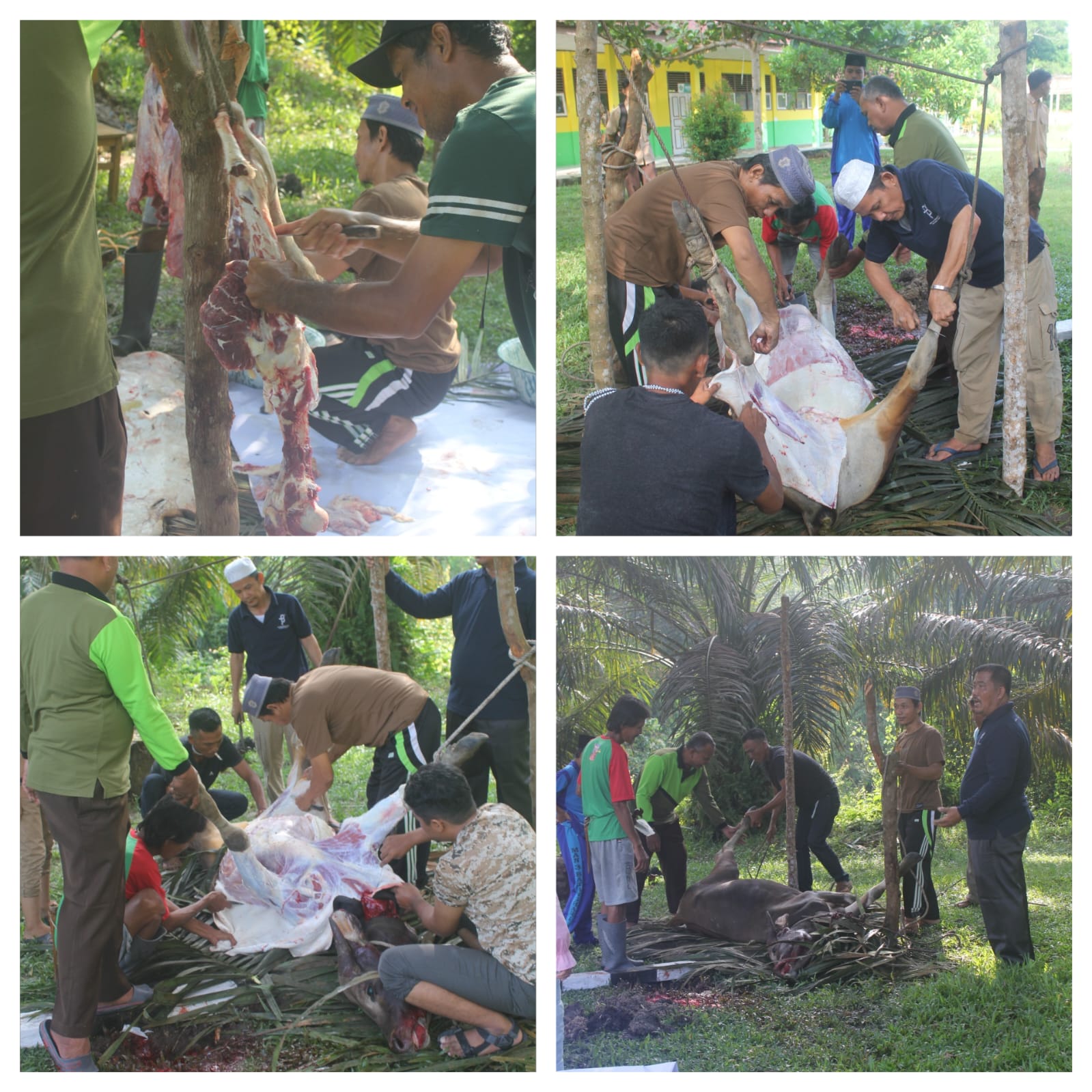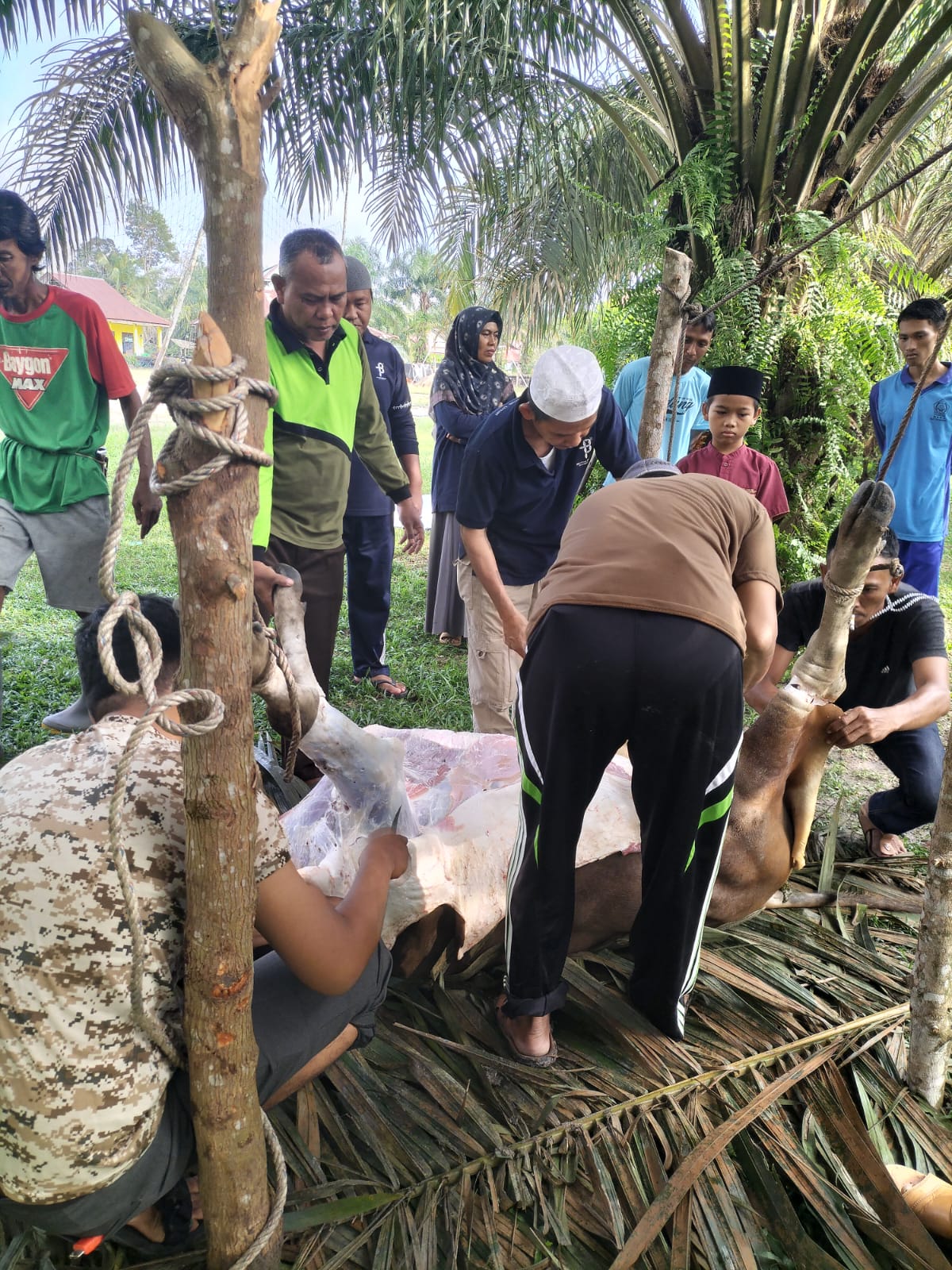 Bertempat di lahan sawit milik Komite MAN 3 Batang Hari, Sabtu 7 Juni 2025, bertepatan 11 Zulhijjah 1446, Kepala MAN 3 Batang Hari beserta sebagian guru dan pegawai menyembelih hewan qurban berupa seekor sapi jantan.