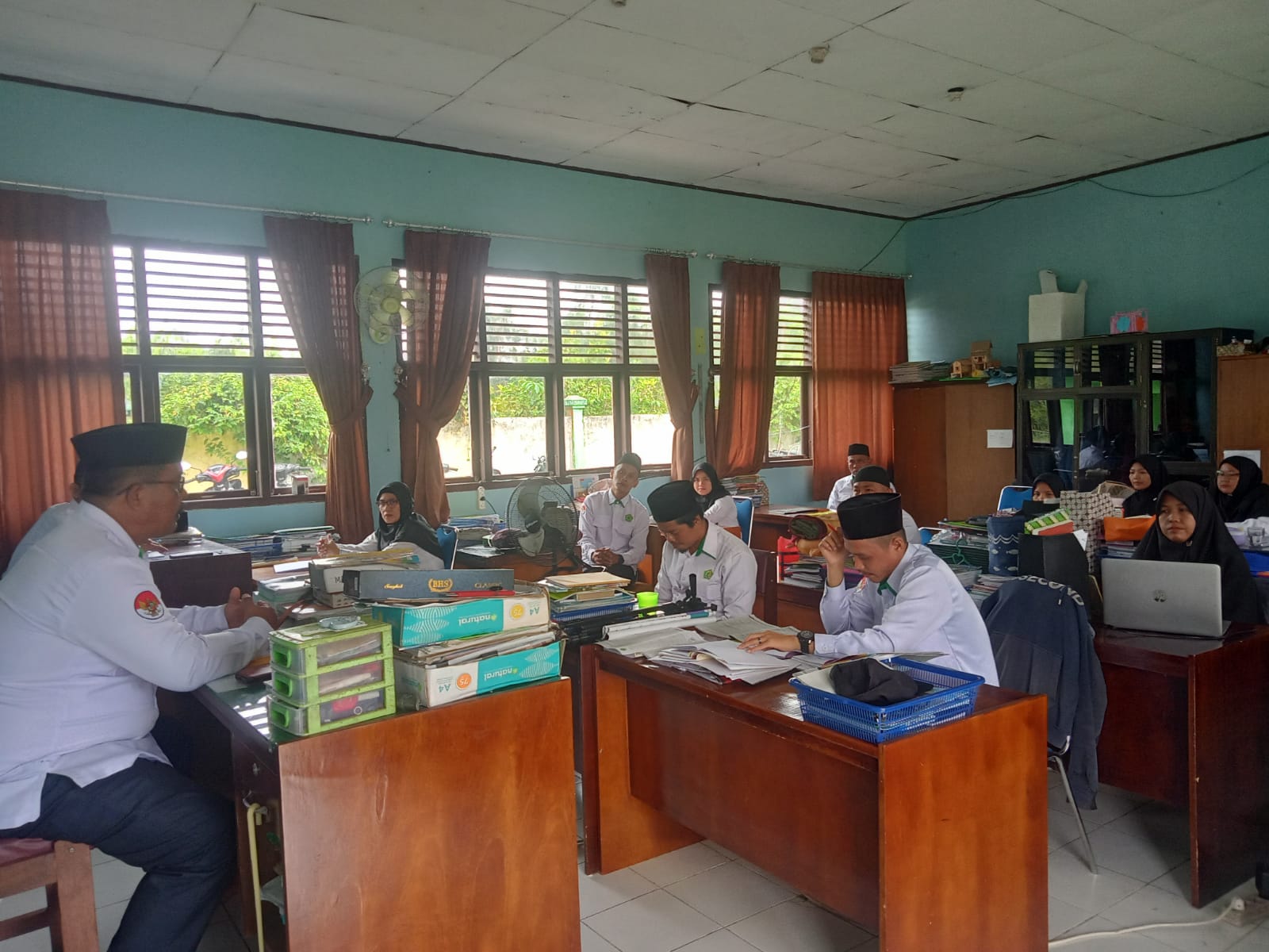 Batang Hari- Senin, 11/08/2025, Madrasah mengadakan Pembinaan Pegawai Evaluasi Pembelajaran Tahun Ajaran 2025/2026 yang dilaksanakan di ruang guru. Acara dibuka oleh Wakil Kepala Madrasah bidang Kesiswaan, Bapak Muhamad, S.Ag, dan dipimpin langsung oleh Kepala Madrasah, Bapak Erman, S.Pd.I, M.Pd. Kegiatan ini diikuti oleh seluruh tenaga pendidik dan kependidikan dengan tujuan mengevaluasi pembelajaran serta menyatukan pemahaman terkait tugas dan tanggung jawab selaku ASN.