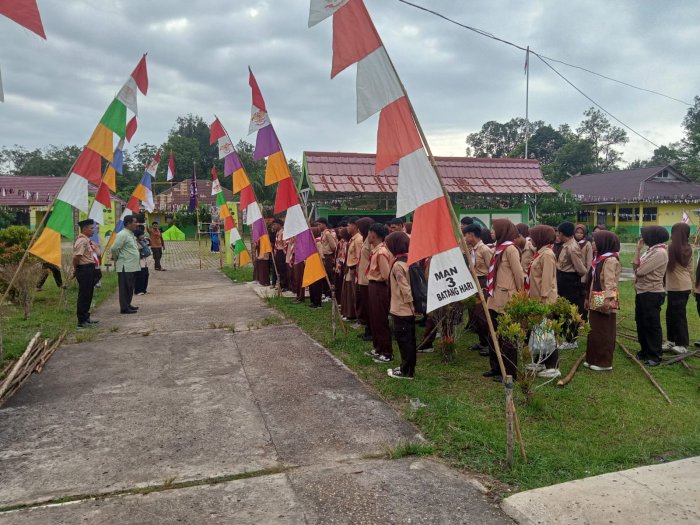 Batang Hari - Keluarga besar MAN 3 Batang Hari menggelar kegiatan kemah pramuka dengan penuh semangat kebersamaan. Kegiatan dalam rangka Penerimaan Tamu Ambalan (PTA) ini dilaksanakn selama 2 hari yaitu Kamis dan Jumat, 18 s.d 19 September 2025 diikuti oleh seluruh anggota pramuka, guru pembina, serta pihak madrasah di Gugus Depan 04.061-04.062 pangkalan MAN 3 Batang Hari. Kegiatan ini menjadi wadah pembinaan karakter, disiplin, dan kemandirian bagi para anggota pramuka sekaligus mempererat tali silaturahmi antarwarga madrasah.