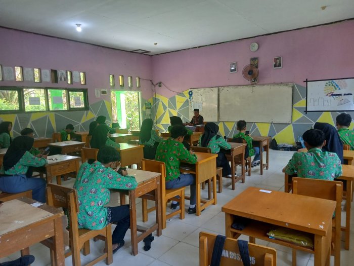 Sebelum ujian dimulai, seluruh peserta didik mendapatkan arahan langsung dari Kepala Madrasah, Bapak Erman S.Pd.I., M.Pd. Penyampaian arahan berlangsung di samping ruang kantor guru, tempat seluruh siswa berkumpul untuk menerima motivasi dan penjelasan terkait tata tertib pelaksanaan ASAS berbasis Android. Dalam arahannya, beliau menekankan pentingnya kejujuran serta kesiapan mental dan teknis selama ujian berlangsung.