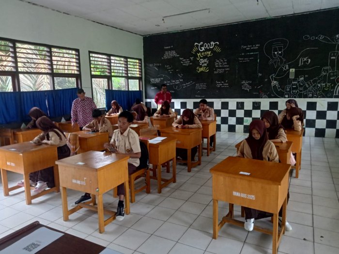Batang Hari Pelaksanaan Asesmen Sumatif Akhir Semester (ASAS) Ganjil di MAN 3 Batang Hari memasuki hari kedua. Kepala Madrasah, Bapak Erman S.Pd.I., M.Pd., meninjau secara langsung ke setiap ruang ujian untuk memastikan seluruh proses berjalan sesuai prosedur. Kehadiran beliau memberikan motivasi sekaligus memastikan tidak ada kendala teknis maupun administrasi yang menghambat pelaksanaan ujian.