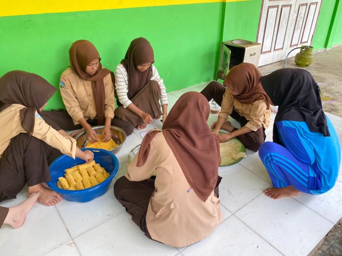 Sementara itu, ujian praktik untuk kelas XII dibagi menjadi dua kelompok besar. Berbeda dari kelas XI yang fokus pada kudapan manis, kelas XII mendapat tugas menyiapkan hidangan dengan tingkat kesulitan lebih tinggi. Mereka harus membuat risol ayam pedas yang memerlukan teknik penggulungan dan penggorengan yang tepat agar hasilnya renyah dan memiliki isian yang merata.