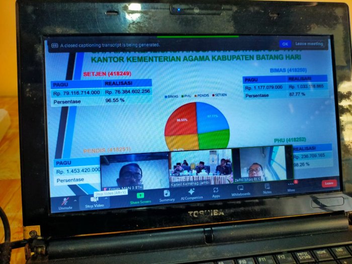 Rapat evaluasi tersebut dimulai pada pukul 09.00 WIB hingga selesai dan diikuti oleh para pimpinan satuan kerja di bawah naungan Kantor Wilayah Kementerian Agama Provinsi Jambi. Kegiatan ini bertujuan untuk menilai sejauh mana pelaksanaan program dan kegiatan yang telah direncanakan selama Triwulan IV Tahun 2025.