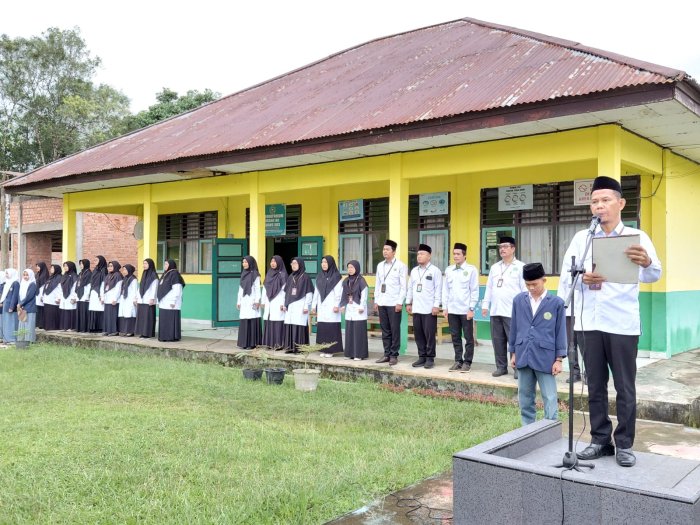 Bertindak sebagai pembina upacara adalah Bapak Muhammad, S.Ag. Dalam amanatnya, beliau menyampaikan pentingnya menjaga wudhu sebagai salah satu upaya agar ilmu yang dipelajari menjadi berkah dan “lengket”. Menurutnya, kebiasaan menjaga wudhu dapat melatih kesadaran spiritual murid dalam kehidupan sehari-hari.