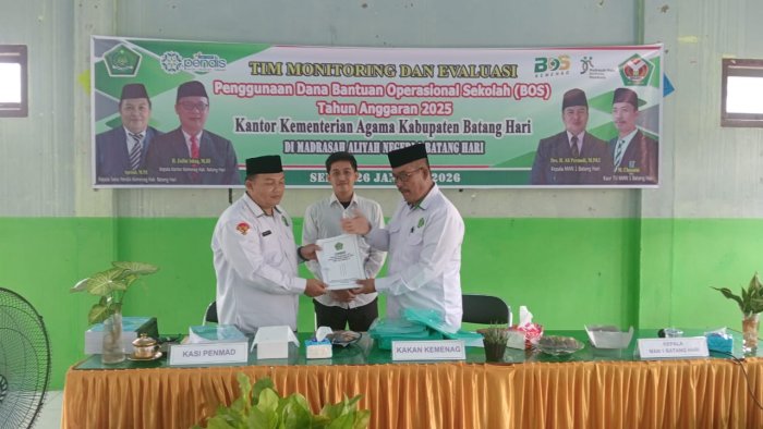 Kegiatan Monev tersebut dilaksanakan pada hari Senin, 26 Januari 2026, bertempat di MAN 1 Batang Hari. Kegiatan ini bertujuan untuk menilai kesesuaian penggunaan dana BOS dengan ketentuan yang berlaku serta memastikan pengelolaan dana dilakukan secara tepat sasaran dan bertanggung jawab.