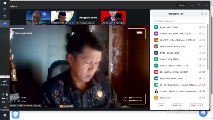 Batang Hari - Rabu 11/02/2026 Kepala Madrasah Aliyah Negeri (MAN) 3 Batang Hari, Erman, S.Pd.I., M.Pd., mengikuti kegiatan Zoom Meeting Rapat Koordinasi Kelompok Kerja Madrasah Aliyah (KKM MA) se-Provinsi Jambi yang digelar mulai pukul 14.00 WIB hingga selesai. Kegiatan ini menjadi momentum penting dalam memperkuat sinergi dan kolaborasi antar madrasah aliyah di seluruh wilayah Jambi.