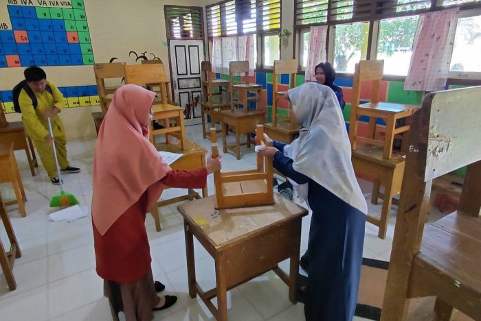 Persiapan ruangan ASAS menjadi salah satu fokus utama panitia. Setiap ruang ujian dibersihkan dan ditata ulang sesuai dengan standar pelaksanaan ujian. Meja dan kursi diatur berjarak, nomor peserta ditempel dengan rapi, serta denah tempat duduk dipasang di depan ruangan untuk memudahkan murid menemukan lokasi ujian masing-masing. Selain itu, panitia juga memastikan kondisi pencahayaan dan ventilasi ruangan dalam keadaan baik agar peserta dapat mengerjakan soal dengan nyaman.